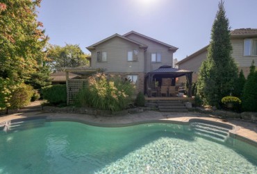 Set on a quiet crescent in the Masonville Public School catchment, this exquisitely upgraded executive home delivers refined living and a resort-style backyard retreat rarely found in the city. Minutes to Western University, University Hospital, St. Joseph's, Sunningdale Golf, and Ivey, the location is unmatched for academic, medical, and professional families. Playgrounds, community parks, and the Medway Valley Heritage Forest trail system elevate the lifestyle with nature just steps away. Inside, the home offers a warm, polished atmosphere with a gracious foyer, separate dining room, and a sun-filled living room with a fireplace and sweeping backyard views. A main-floor office provides a quiet, private workspace set apart from the principal rooms. Premium window treatments, rich hardwood flooring, and fresh neutral tones underscore the home's elevated aesthetic. The kitchen is a showpiece-designed with intention, luxury, and performance in mind. Wall-to-wall cabinetry creates exceptional storage and prep space. Stainless appliances include an impressive 6-burner gas range, while espresso cabinetry with backlit rain-glass uppers adds dramatic depth. Granite surfaces enhance the space and the contrast-tone, 4-seat island. The laundry/mudroom enhances daily function with built-in cabinetry, a full folding counter, and garage access. Upstairs, the generous primary suite offers a walk-in closet and a spacious ensuite. Three additional bedrooms share a refreshed main bath, and the lower level provides substantial storage and future potential. The backyard is the true showstopper: a heated pool anchors a private outdoor resort with multiple zones for lounging, dining, entertaining, and relaxing. A pergola lounge, tiki hut/bar, dining gazebo, and manicured green space framed by mature trees create a setting that feels worlds away. With a double garage and commanding curb appeal, this home delivers exceptional family living in one of London's most desirable neighbourhoods.