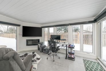 Set back on a 100-ft-wide, 0.40 acre lot along coveted Windermere Court West-an exclusive, traffic-calmed lane with homes on only one side overlooking the Elsie Perrin Estate-this fully transformed modern residence delivers 3,177 sq ft above grade and a seductive gallery-style aesthetic. The road is curbed, dead-ended, and services only the resident homes, enhancing peace and privacy. With Western University, University Hospital, and Medway Valley trails in walking distance, the setting is unmatched for buyers who value location. Inside, the main level flows with curated, art-gallery intention: newer windows and doors frame natural light, continuous flooring extends sightlines, and a sculptural quartz fireplace surround and feature wall creates impact defining the stepped-down living room. The architectural kitchen performs as both workspace and showpiece, offering dual islands, extensive cabinetry, a porcelain/quartz feature wall, and a walk-in pantry. A generous dining area, sunroom/office, impressive main bath, and three bedrooms - including a bold, light-filled primary suite with a beautifully redesigned ensuite-complete the main level. The lower level expands the home's lifestyle narrative with nearly 2,000 sq ft of upscale finished space. Glass partitions showcase a double laundry suite, a glassed-in gym, and a glass-front bonus room ideal for a future wine cellar, adding a boutique-hotel sensibility. A large workout studio, lounge, games area, full bath, finished bonus room, and a private bedroom complete the level. Outside, the deep, fully fenced yard evolves into a private resort: heated salt-water sport-pool, hot tub, and a pool house that flows into a covered lanai-creating effortless outdoor living whether you want shade, shelter from rain, or a serene retreat after a workout. Redesigned front landscaping and lift-height garage ceilings complete this modern sanctuary. Windermere Court West is a rare address-and this is one of its most compelling homes.