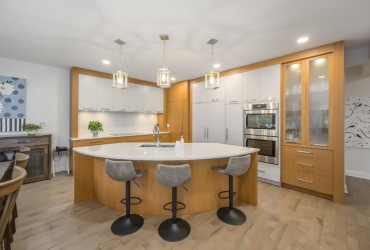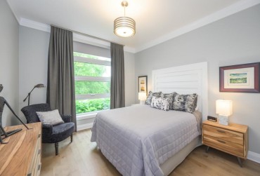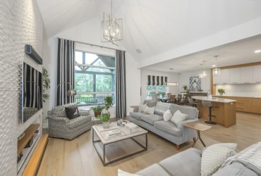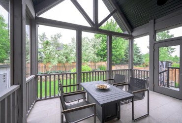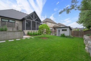 I love the one floor open design which showcases bright, oversized windows, and a central Great Room with 18’ vaulted ceiling that extends outside to a screened-in Muskoka porch. I love my gardens especially the raised boxes for the vegetables. The kitchen is functional with plenty of cabinetry storage and an expansive, hidden walkin pantry.