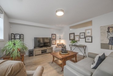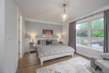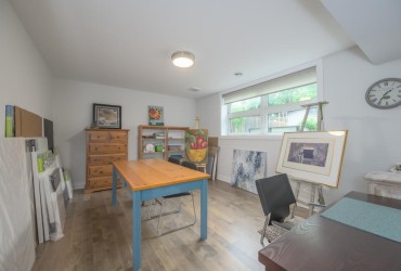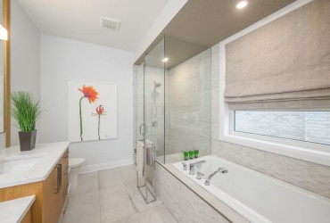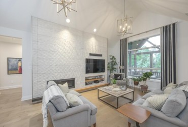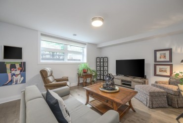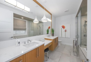 The primary en-suite is a zen space with a deluxe soaker tub, large tiled, glass shower including a bench, his and hers vanities bordering the make up counter. It’s convenient to have 2 full bathrooms in main floor with a guest powder room and an additional bathroom in the finished lower level.