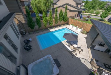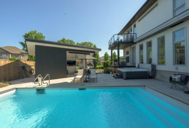 Luxury living redefined 10 min west of London. Tucked onto a quiet crescent, this extraordinary executive residence offers an enviable lifestyle with a premium lot and show-stopping resort-style backyard anchored by a heated saltwater pool with state -of-the-art automated safety cover (~25k), and year-round cabana retreat. Curated with smart home technology, every detail reflects thoughtful design and elevated finish. Modern curb appeal impacts with crisp black-and-white contrast, manicured landscaping, and a triple bay heated garage (fully insulated/epoxy flooring) plus six-car driveway. A dramatic two-storey foyer with glass-railed floating staircase and full-height windows creates a luminous entry. Wide-plank White Oak hardwood draws you to the airy great room and a sleek two-sided gas fireplace with a floor-to-ceiling stone surround that also serves the outdoor living space. The chef's kitchen is striking and high-function, showcasing stone surfaces, a 4-seat island with wine fridge, programmable lighting, and premium stainless appliances. A dedicated home office, sleek powder room, and crisp designer lighting/paint tones elevate the main floor ambiance. Upstairs, the primary suite is a true retreat with a herringbone feature wall, tray ceiling, walk-in closet with custom built-ins, automated shades & a private glass-railed balcony. The spa-like ensuite offers radiant in-floor heat, luxe finishes. Three additional bedrooms each with hardwood flooring, solid-core doors, and motorized shades share the level with a well-appointed laundry room. The fully finished lower level offers an expansive recreation area, full bathroom + a home gym with glass enclosure and high-end audio. Outside, the cabana is an entertainers dream with integrated lighting, wet bar, beverage fridges, and 3-piece bathroom all framed by lush black cedar privacy hedging. A seamless blend of technology & design just minutes from Komoka Provincial Park & 11 km of trails along the Thames River.